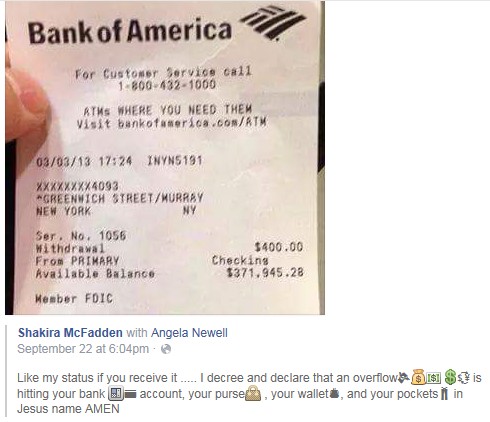 One will not die a painful death, or be haunted, or go to hell if one doesn’t “Like and Share” all of the posts that tell one to do so. Also, one will not become wealthy by sharing a picture of money.